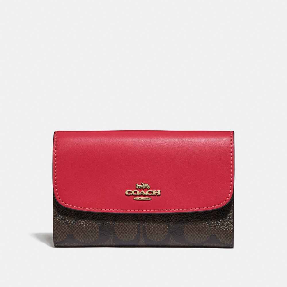 COACH F32485 - MEDIUM ENVELOPE WALLET IN SIGNATURE CANVAS - BROWN/TRUE-RED/LIGHT-GOLD - WHATS-NEW