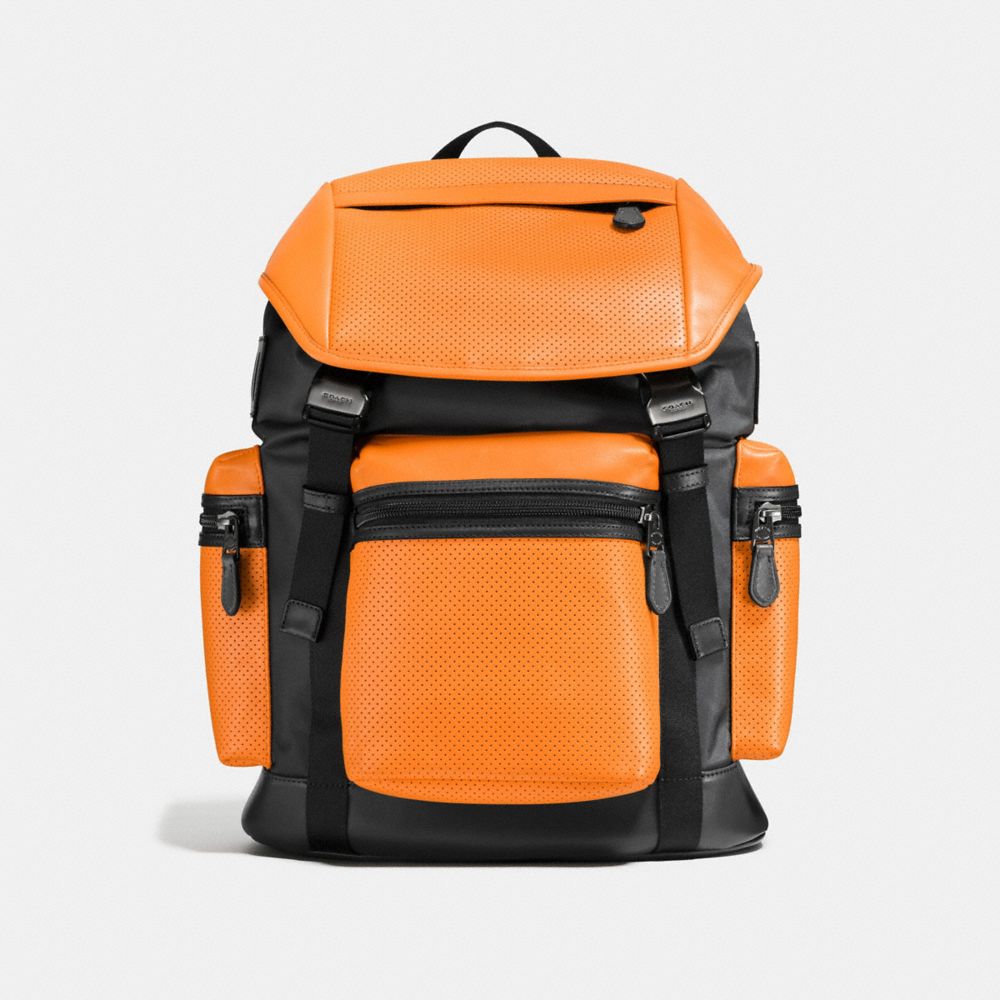 COACH F57477 TERRAIN TREK PACK IN PERFORATED MIXED MATERIALS - ORANGE/GRAPHITE(click the link before for more detail)