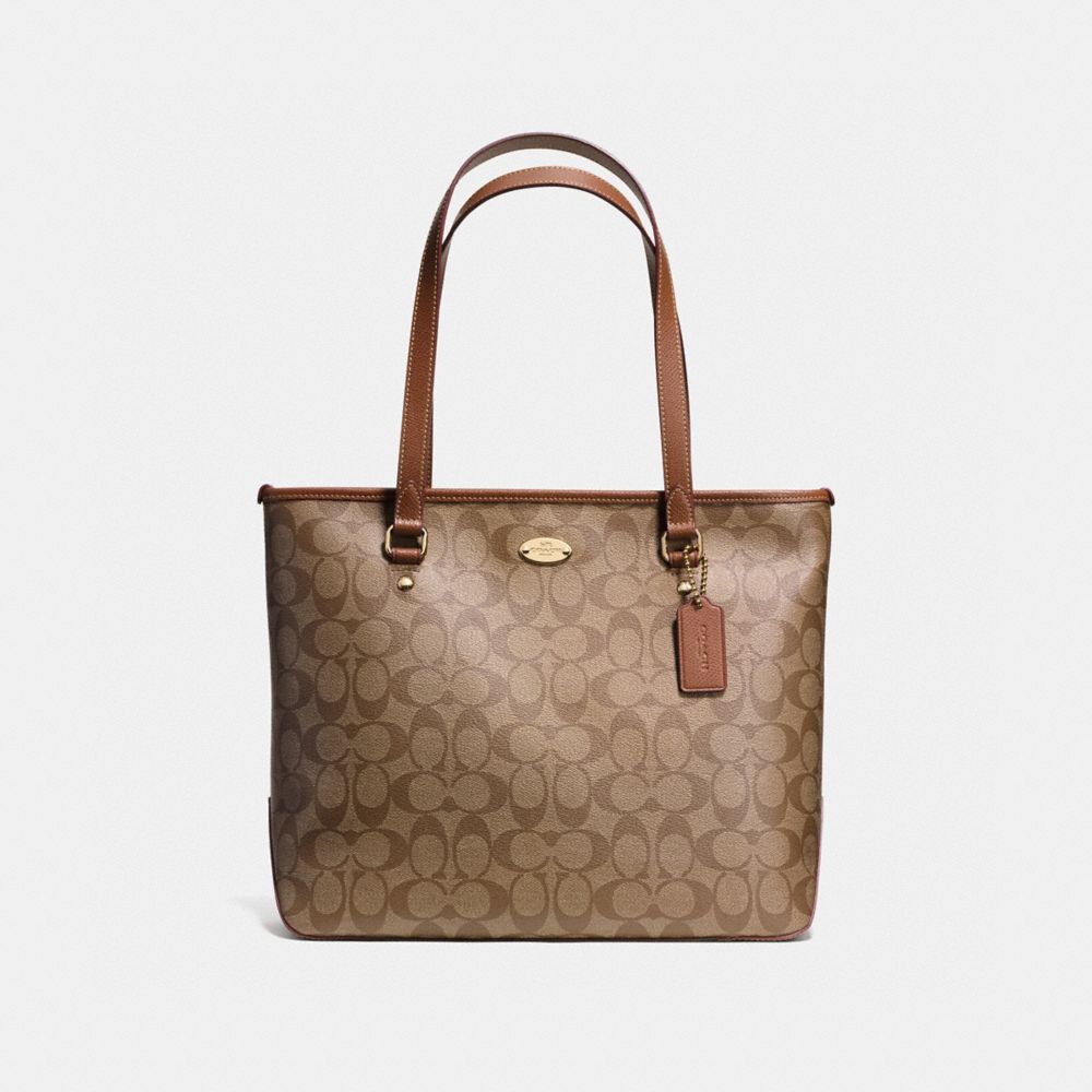 COACH F58294 - ZIP TOP TOTE IN SIGNATURE - IMITATION-GOLD/KHAKI/SADDLE - HANDBAGS