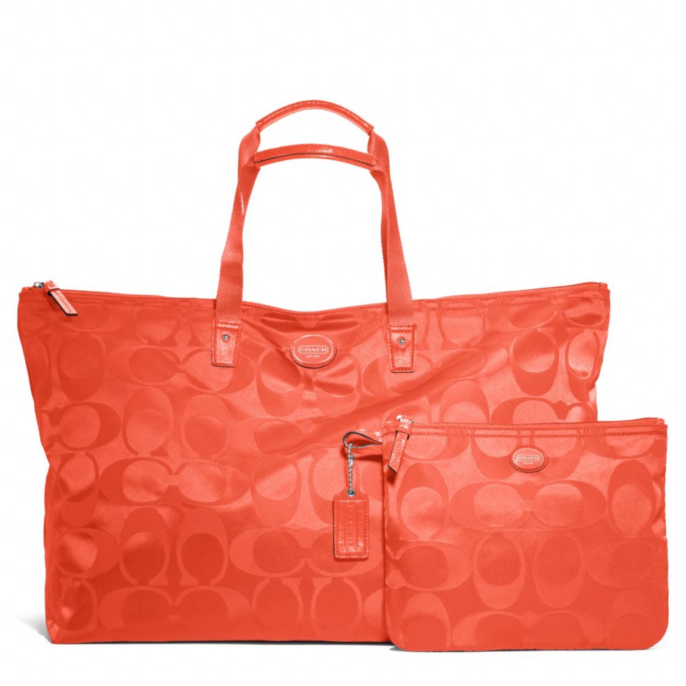 COACH F77316 GETAWAY SIGNATURE NYLON LARGE PACKABLE WEEKENDER - SILVER/HOT ORANGE(click the link before for more detail)