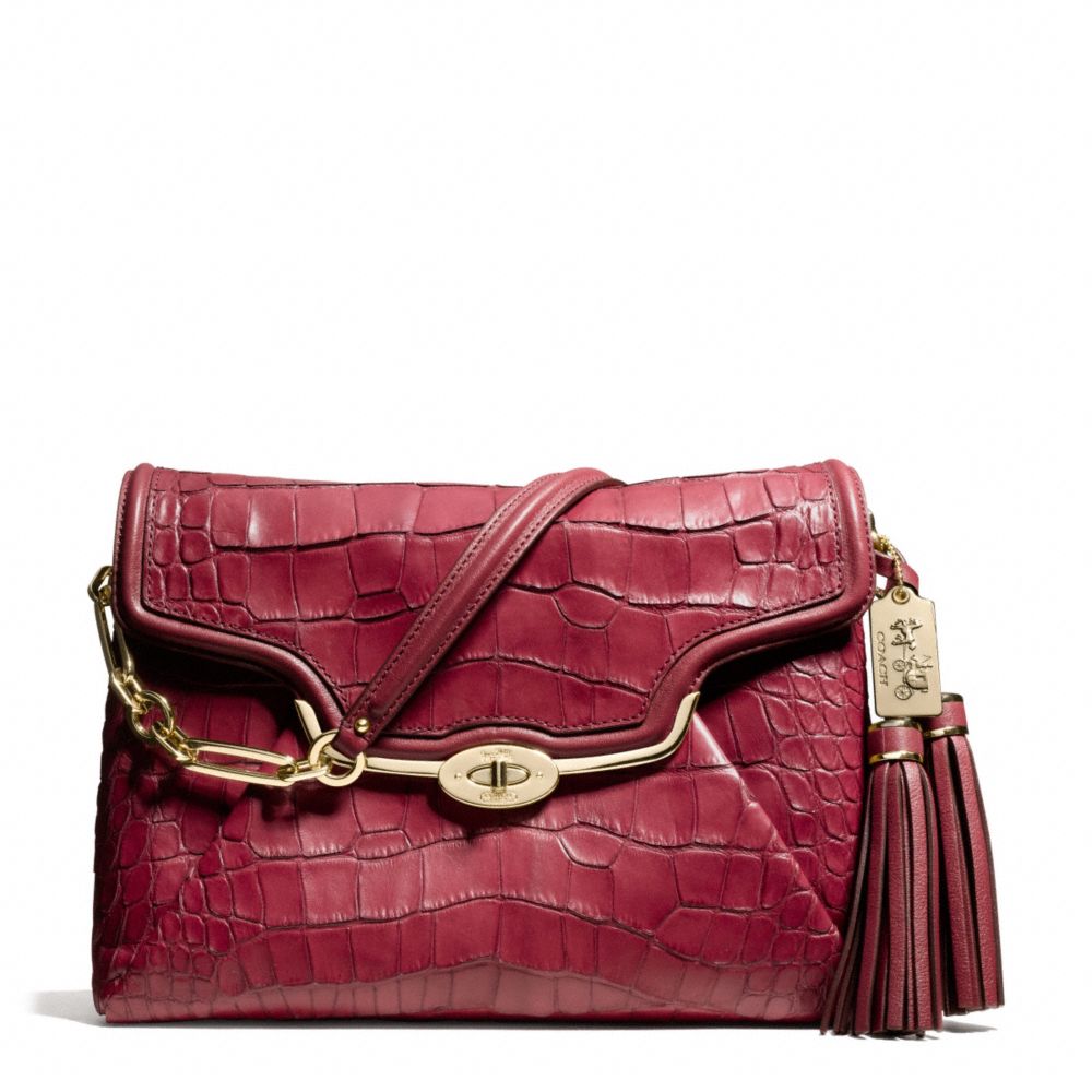 COACH F26334 - MADISON CROC EMBOSSED SHOULDER FLAP - LIGHT-GOLD/RUST-RED - HANDBAGS