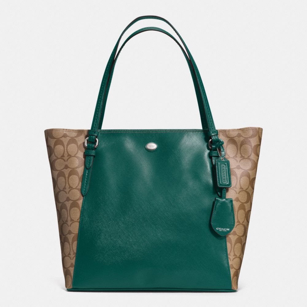 COACH F30301 - PEYTON COATED CANVAS SAFFIANO TOTE - SILVER/KHAKI/RACING-GREEN - HANDBAGS