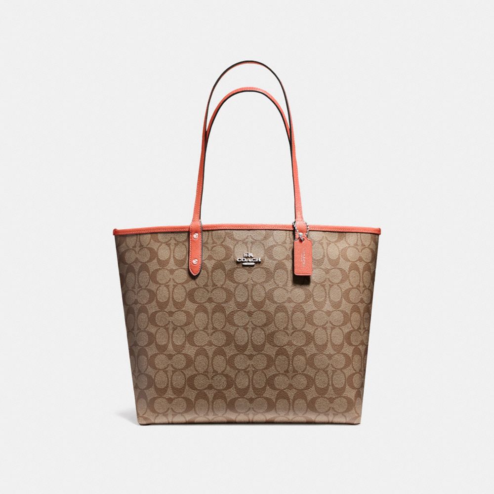 COACH F36658 - REVERSIBLE CITY TOTE IN SIGNATURE CANVAS - KHAKI/ORANGE-RED/SILVER - HANDBAGS