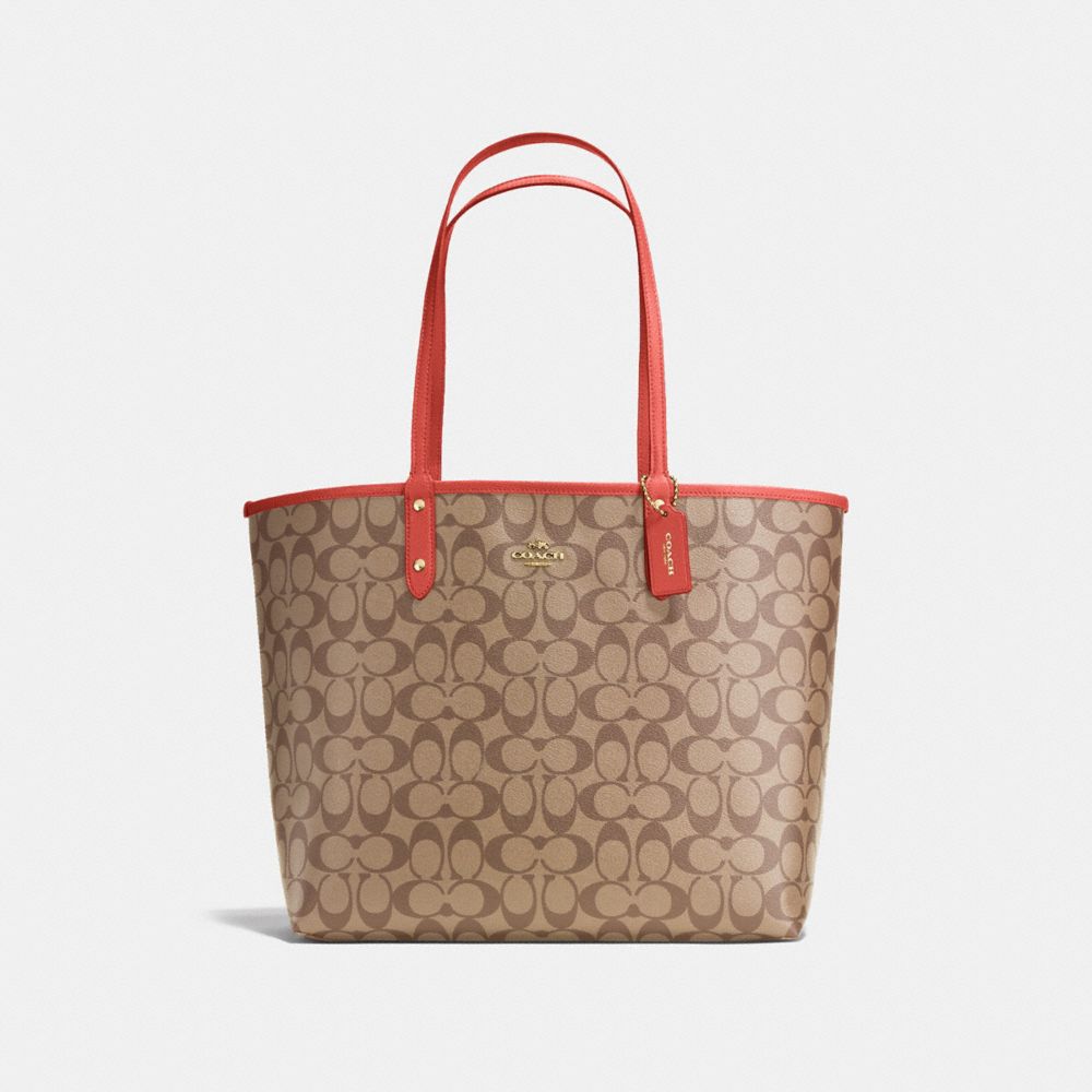 COACH F36658 - REVERSIBLE CITY TOTE IN SIGNATURE - IMITATION-GOLD/KHAKI/WATERMELON - HANDBAGS