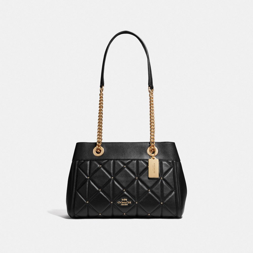 COACH F38071 - BROOKE CHAIN CARRYALL WITH STUDDED DIAMOND QUILTING - BLACK/LIGHT-GOLD - HANDBAGS