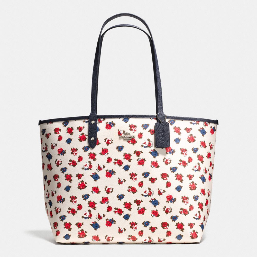 COACH F57668 - REVERSIBLE CITY TOTE IN TEA ROSE FLORAL PRINT COATED CANVAS - SILVER/CHALK-MULTI-MIDNIGHT - HANDBAGS