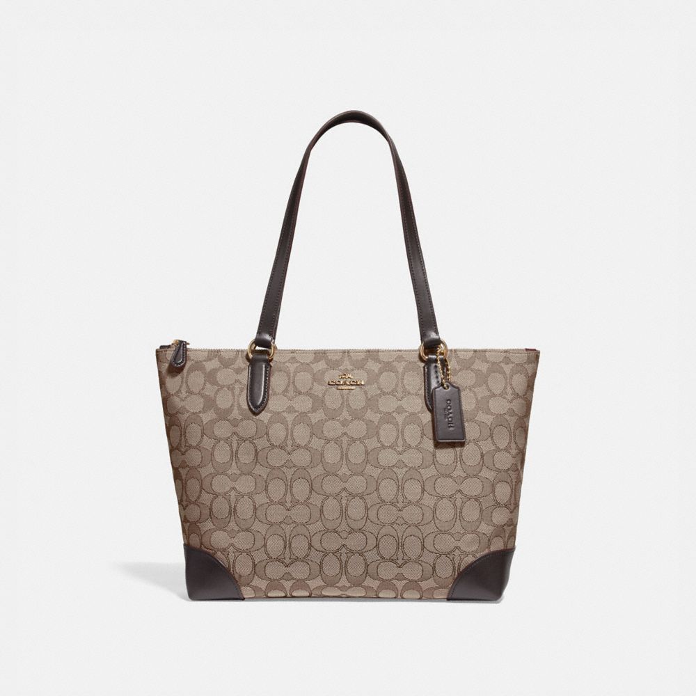 1. COACH f29958 - ZIP TOP TOTE IN SIGNATURE JACQUARD - KHAKI/BROWN/IMITATION GOLD